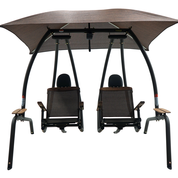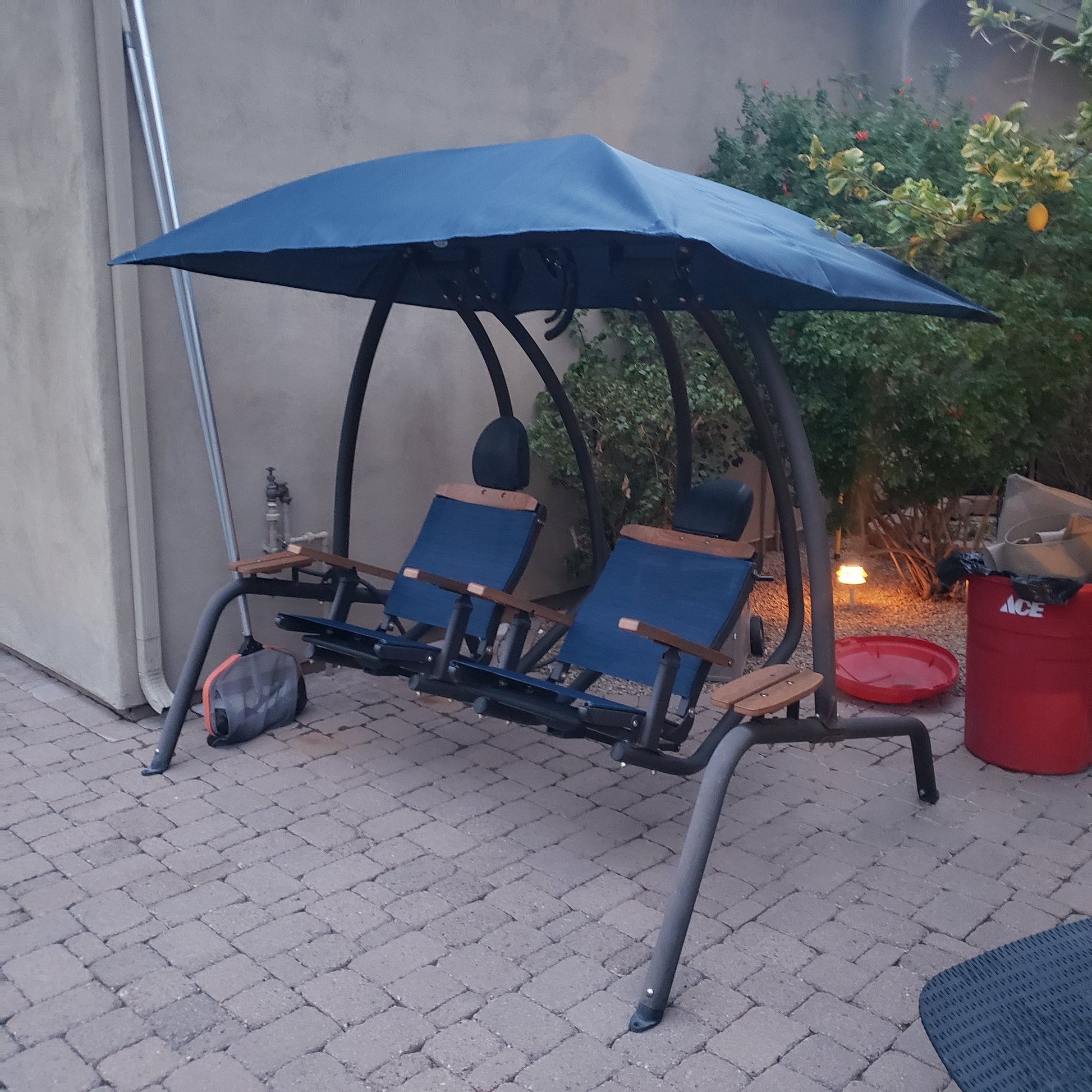 Looking for the perfect way to share a relaxing moment with a loved one? Look no further than the 421L Sunset Swing, also known as the Double Lounge Swing. Drape lights, plants, or even a mister from the canopy to customize your swing and create the perfect outdoor oasis!